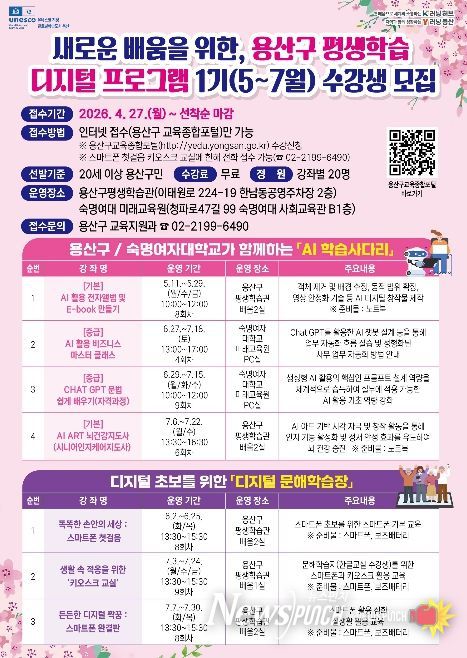 박희영 용산구청장은 “이번 공모사업 선정은 용산형 평생교육 정책의 의미 있는 성과이자, 지속 가능한 학습 도시로 도약하는 계기”라며, “앞으로도 구민 누구나 배움의 기회를 누릴 수 있도록 다양한 평생학습 기반을 확대해 나가겠다”라고 말했다.