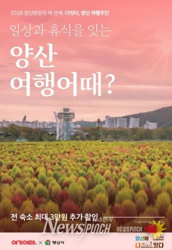뉴스펀치 박세훈 기자 | 양산시는 ‘2026 양산방문의 해’를 맞아 당일형 관광에 치중된 여행 패턴을 관내에서 하룻밤 머무는 ‘체류형 관광’으로 전환하면서 지역 관광 산업에 활력을 불어넣기 위해 추진한 숙박 할인 프로모션 ‘다잇다, 양산 여행주간’이 관광객들의 높은 이용률 속에 개시 일주일 만에 종료됐다고 밝혔다.