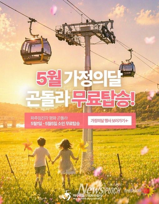 뉴스펀치 박상훈 기자 | 파주시는 대표 관광 콘텐츠로 자리 잡은 ‘파주임진각평화곤돌라’에서 5월 가정의 달을 맞아 가족 단위 방문객을 위한 다양한 프로그램을 운영한다고 전했다.