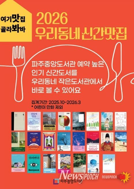 뉴스펀치 박상훈 기자 | 파주시 중앙도서관은 지역 내 작은도서관 활성화를 위해 2024년부터 추진해 온 '우리동네 신간맛집' 사업을 지난 23일부터 관내 13개 작은도서관과 함께 본격 운영하고 있다.