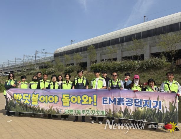 뉴스펀치 박상훈 기자 | 파주시 금촌1동 주민자치회는 지난 23일 금촌천 일원에서 유용미생물(EM) 흙공 투하와 하천 주변 쓰레기 수거를 병행하며 금촌천 수질 개선과 생태환경 보호에 나섰다.