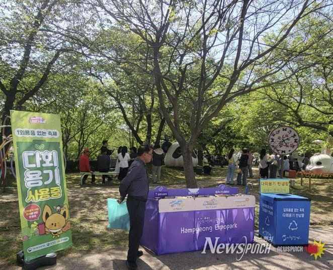 뉴스펀치 김용희 기자 | 전남 함평군이 제28회 함평나비대축제를 맞아 행사장에 다회용기를 공급하고 친환경 축제 운영에 나섰다.