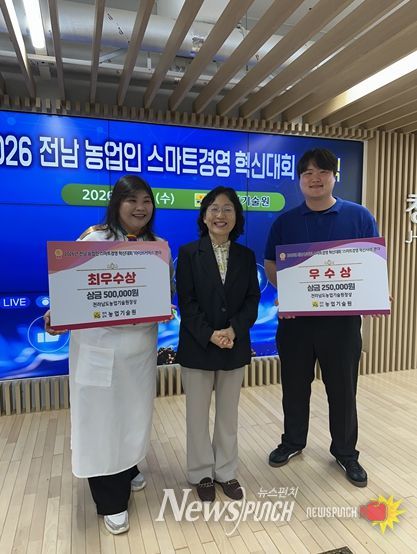 뉴스펀치 김용희 기자 | 강진군이 지난 22일 전라남도농업기술원에서 열린 '2026년 전남 농업인 스마트경영 혁신대회'에서 주요 부문을 휩쓸며 디지털 농업 교육의 강력한 성과를 입증했다.