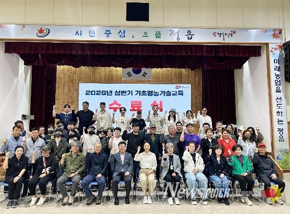 뉴스펀치 정홍균 기자 | 정읍시농업기술센터가 지난 24일 ‘2026년 상반기 신규농업인 기초영농기술교육’을 마무리하고 55명의 수료생을 배출했다.