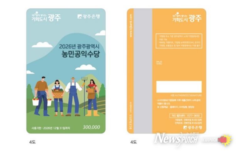 뉴스펀치 김용희 기자 | 광주광역시는 농업의 공익적 가치를 존중하고 농가의 경영 안정을 돕기 위한 ‘2026년 농민공익수당’을 5월29일까지 지급한다.