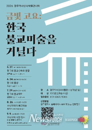 뉴스펀치 김용희 기자 | 광주역사민속박물관은 오는 5월 27일부터 박물관대학 ‘금빛 고요 : 한국 불교미술을 거닐다’를 운영한다.