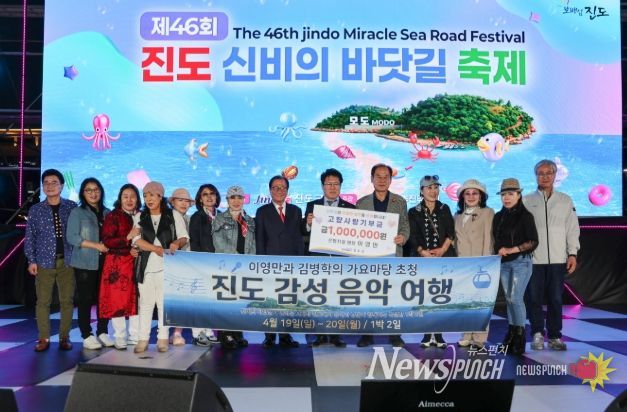 뉴스펀치 김용희 기자 | 지난 19일 진도군 철마광장에서 열린 진도 신비의 바닷길 축제 ‘미라클 콘서트’ 행사에서 서울 은평치과의 대표원장인 이영만 박사가 고향사랑기부금 100만 원을 기부했다.