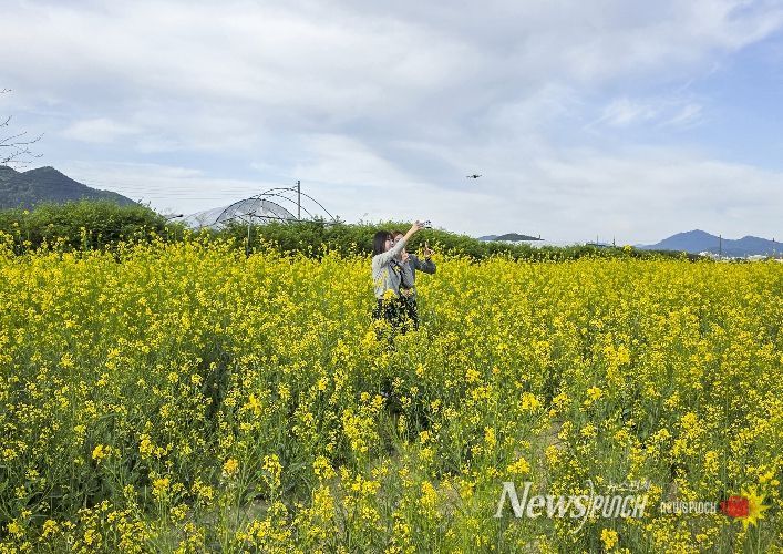 뉴스펀치 정홍균 기자 | 남원시 주생면의 옛 활주로 부지가 노란 유채꽃 물결로 뒤덮여 상춘객들의 마음을 설레게 하고 있다.