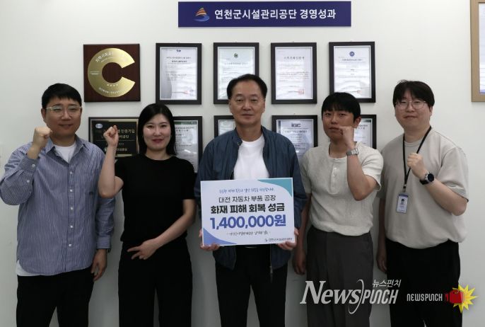 뉴스펀치 박상훈 기자 | 연천군시설관리공단은 지난 23일 대전 자동차 부품 공장 화재로 피해를 입은 근로자 및 이재민 지원을 위한 성금 1,400,000원을 대한적십자사에 전달했다고 밝혔다.