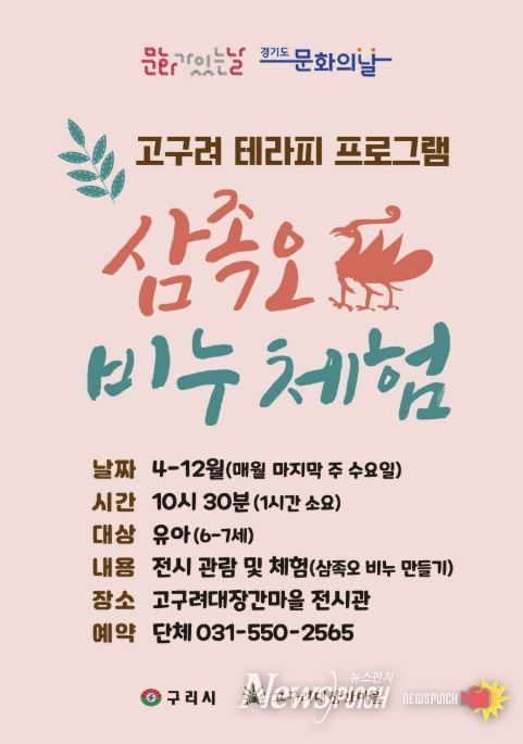 뉴스펀치 박상훈 기자 | 구리시는 4월부터 고구려대장간마을에서 매월 마지막 주 수요일 ‘문화가 있는 날’을 맞아 ‘삼족오 비누 체험! 고구려 치료 프로그램’을 운영한다고 밝혔다.