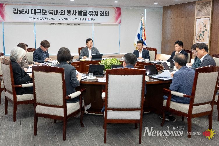 뉴스펀치 조평훈 기자 | 강릉시는 27일 오전 9시 시청 8층 시민사랑방에서 김상영 강릉시장 권한대행 주재로 대규모 국내외 행사 발굴·유치 회의를 개최했다.