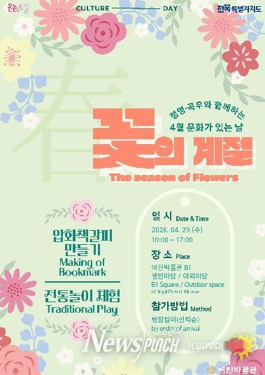 뉴스펀치 최영남 기자 | 전주시 어진박물관은 오는 29일 4월 ‘문화가 있는 날’을 맞아 ‘꽃의 계절’을 주제로 한 체험프로그램을 운영한다고 27일 밝혔다.