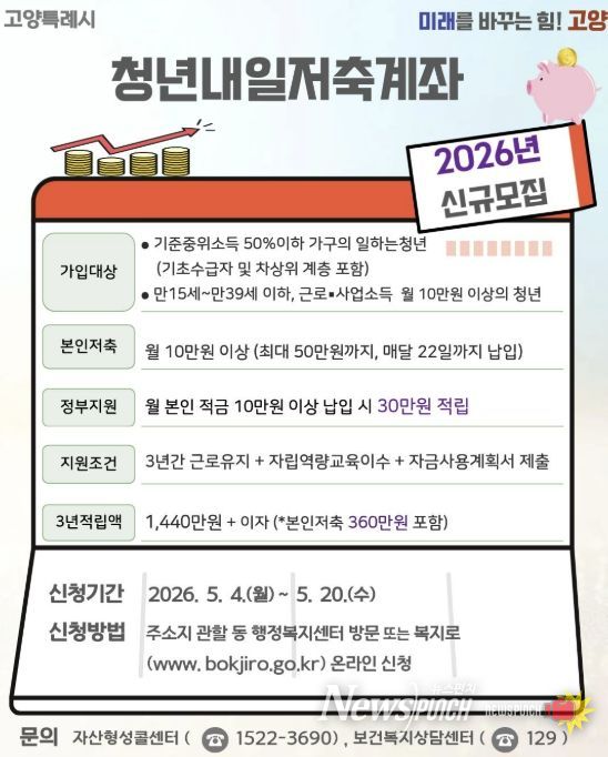뉴스펀치 박상훈 기자 | 고양특례시는 5월 4일부터 시작하는 청년내일저축계좌 신규 가입자 모집을 앞두고, 가입 독려에 나섰다.