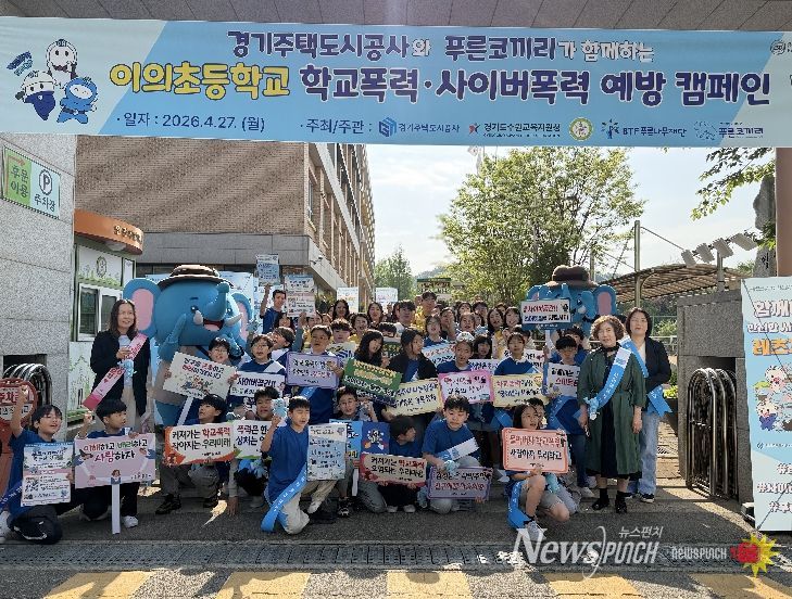 뉴스펀치 박상훈 기자 | 경기주택도시공사(GH)가 수원시 이의초등학교에서 사이버 학교폭력 예방을 위한 등굣길 캠페인과 찾아가는 예방교육을 실시했다고 27일 밝혔다.