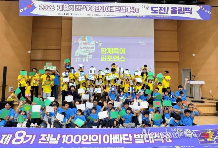 뉴스펀치 김용희 기자 | 전라남도는 최근 화순 어울림센터체육관에서 ‘2026년 제8기 전남 100인의 아빠단 발대식 및 도전! 가족올림픽’을 열고, 아빠의 육아 참여 확대와 함께하는 돌봄 문화 확산을 다짐했다.