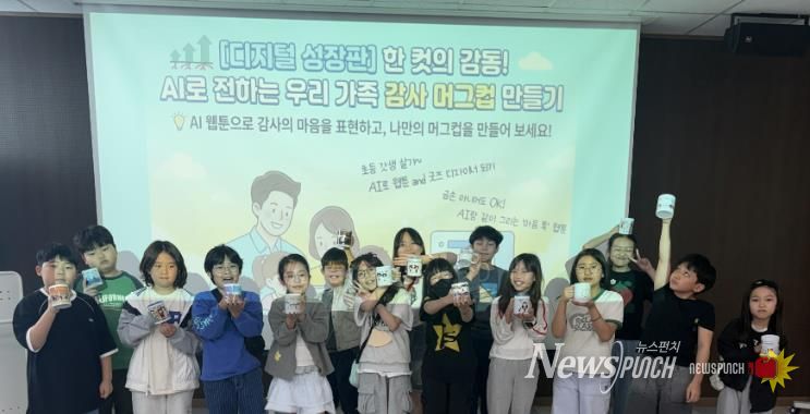 이번 프로그램은 초등학교 4~6학년 청소년 15명이 참여한 가운데 진행됐으며, 생성형 인공지능(AI)을 활용한 웹툰 제작과 머그컵 굿즈 제작을 결합한 체험형 활동으로 운영됐다.