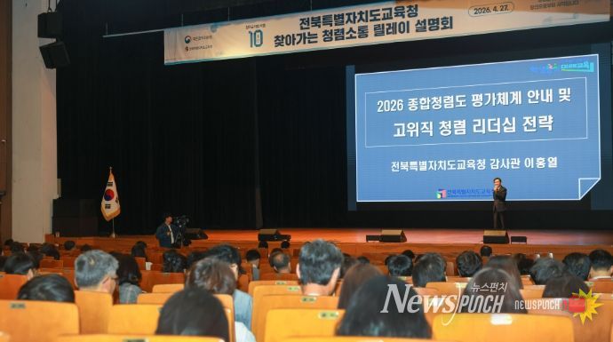 뉴스펀치 최영남 기자 | 전북특별자치도교육청은 27일 전주학생교육문화관에서 ‘2026년 행동강령책임관 등 청렴교육’을 실시했다.