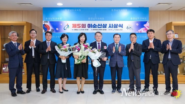 뉴스펀치 이현승 기자 | 충남도교육청은 27일, 도교육청 접견실에서 ‘제5회 이순신상’ 시상식을 개최하고, 충무공 이순신 장군의 애국·애민 정신을 실천하며 교육 발전에 기여한 인물을 선정해 시상했다.