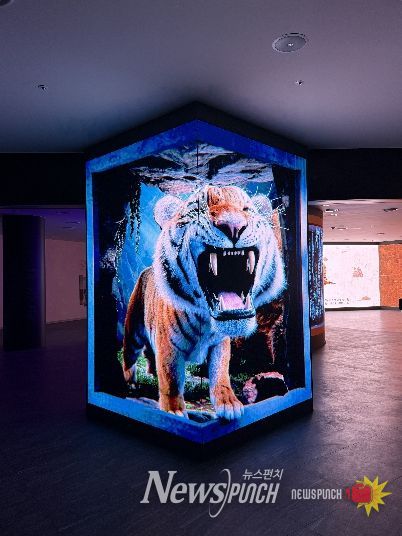 전시관 입구에 들어서면 가장 먼저 ‘일연스님의 따뜻한 환영 인사’가 관람객을 맞이하며 역사 속으로의 여행을 안내한다. 이어 거대한 LED 스크린에서는 화면 밖으로 튀어나올 듯한 ‘3D 아나모픽 곰과 호랑이’ 영상이 펼쳐진다. 삼국유사 속 건국 신화의 주인공인 곰과 호랑이가 생생한 움직임의 실감형 콘텐츠로 구현되어, 입구에서부터 관람객들에게 압도적인 시각적 경험과 몰입감을 선사한다.