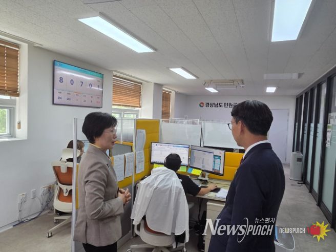 김명주 경남도 경제부지사는 24일 창원시 사림동에 위치한 경남도 민원콜센터를 방문해 운영상황을 점검했다. 경남도 민원콜센터에는 상담원 9명이 근무하고 있으며 일자리, 청년, 보건, 복지 등 797종의 상담 매뉴얼을 갖추고 1일 평균 217건의 민원콜을 처리하고 있다.
