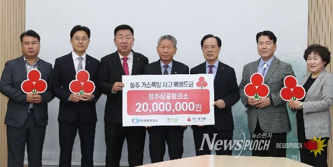 청주상공회의소는 성금 2천만원을 청주시에 전달했다. 차태환 청주상공회의소 회장은 “예기치 못한 사고로 어려움을 겪고 있는 이웃들에게 조금이나마 힘이 되기를 바란다”며 “앞으로도 회원들과 함께 지역사회 소외계층과 재난 피해 이웃을 위한 나눔 활동을 지속적으로 이어가겠다”고 말했다.