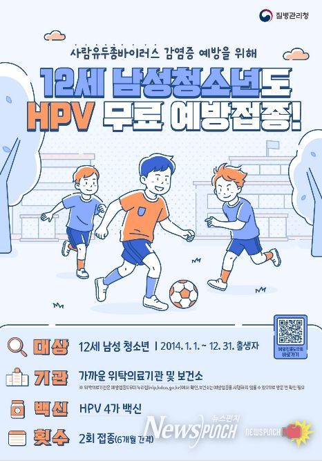 이번 사업은 오는 5월 6일부터 시행된다. 지원 대상은 2026년 기준 2014년생 남아(12세)로, HPV 백신(HPV4가)을 6개월 간격으로 총 2회 무료 접종받을 수 있다.