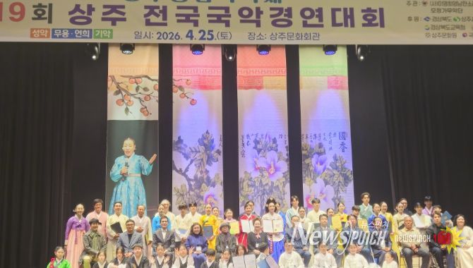 뉴스펀치 박세훈 기자 | 상주시에서 (사)이명희영남판소리보존회가 주최하고 (사)이명희영남판소리보존회 상주지부와 상주정정미판소리전수교육관이 공동 주관하는 ‘상주종합국악제 제19회 상주 전국 국악경연대회’가 4월 25일 토요일, 상주문화회관 대공연장에서 개최됐다.
