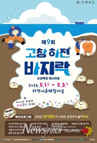 뉴스펀치 정홍균 기자 | 고창군이 오는 5월1~3일 심원면 하전어촌체험마을 일원에서 ‘제9회 하전바지락 오감체험 페스티벌’을 개최한다고 밝혔다.