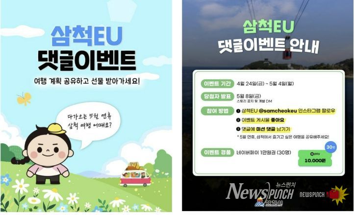 아울러 관광지 운영과 함께 온라인 홍보도 강화한다. 삼척시 공식 관광 SNS 채널 ‘삼척EU’를 통해 5월 가정의 달을 겨냥한 참여형 이벤트를 마련해 관광객과 시민의 관심을 유도할 계획이다.