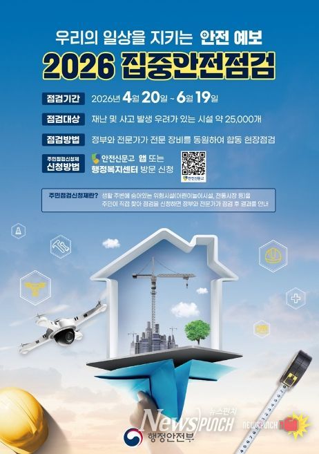 뉴스펀치 박상훈 기자 | 서울 송파구가 재난을 예방하고 구민 안전을 확보하기 위해 오는 6월까지 관내 주요 시설물 94개소를 대상으로 ‘2026년 집중안전점검’에 나선다고 밝혔다.