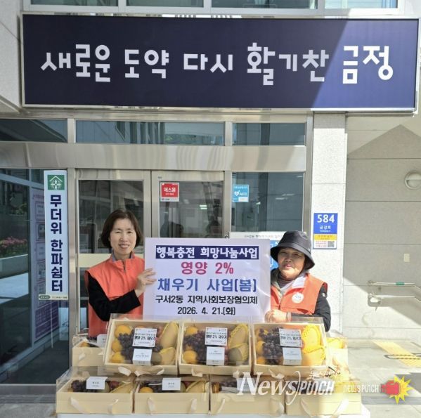 뉴스펀치 김윤걸 기자 | 부산 금정구 구서2동 지역사회보장협의체는 지난 21일 봄철을 맞아 관내 고독사 위험이 있는 중장년 남성 1인 가구 15세대를 대상으로 제철 과일로 구성된 '영양 2% 채우기 꾸러미'를 전달했다.