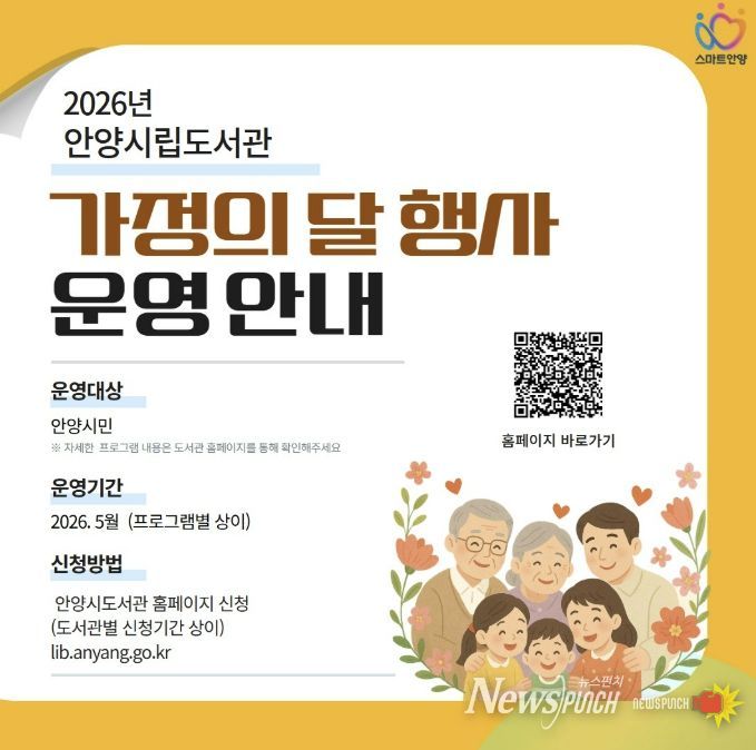 뉴스펀치 박상훈 기자 | 안양시도서관은 5월 가정의 달을 맞아 어린이와 부모가 함께하는 체험프로그램, 가족공연, 인문학 강연, 생활문화 강좌, 전시 등 다양한 행사를 마련했다.
