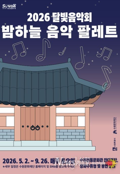 뉴스펀치 박상훈 기자 | 수원문화재단은 오는 5월부터 9월까지 국가유산과 자연, 음악이 어우러진 야간 공연 프로그램 '2026 달빛음악회 '밤하늘 음악 팔레트'’를 운영한다.