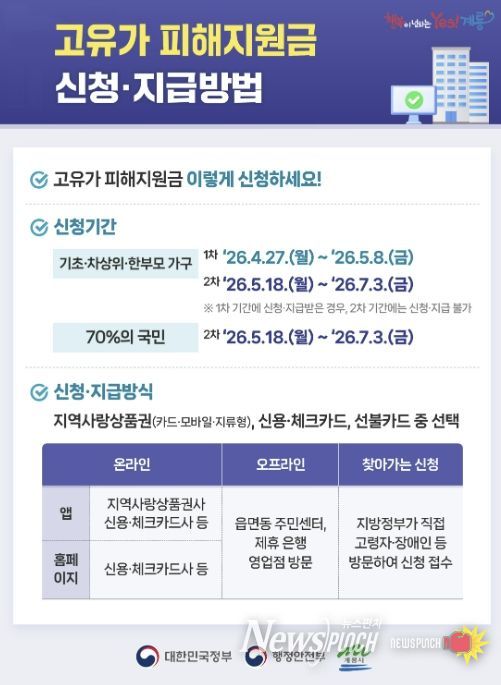 뉴스펀치 이현승 기자 | 충남 계룡시는 중동전쟁 여파로 지속되는 에너지 가격 상승에 따른 시민 부담을 덜기 위해 추진 중인'고유가 피해지원금'의 원활한 지급을 위해 27일 현장 점검에 나섰다.