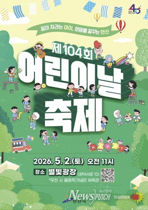 뉴스펀치 박상훈 기자 | 안산시는 다가오는 어린이날을 맞아 온 가족이 함께 즐길 수 있는 ‘제104회 어린이날 축제’를 별빛광장에서 개최한다고 28일 밝혔다.