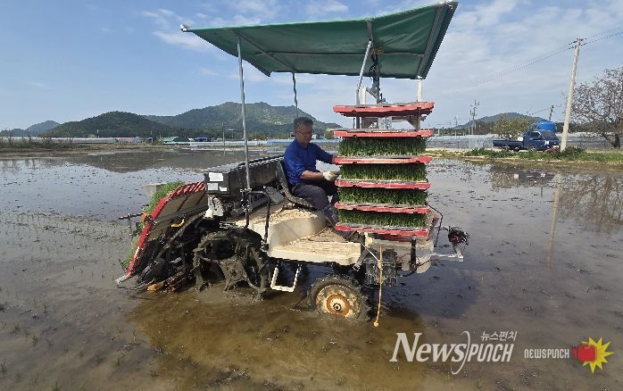 뉴스펀치 박세훈 기자 | 상주시는 4. 27. 올해 첫 모내기를 실시하는 모서면 도안리 소재 농가의 모내기 현장을 방문하여 올 한해 풍년농사를 이루도록 농업인들을 격려했다.