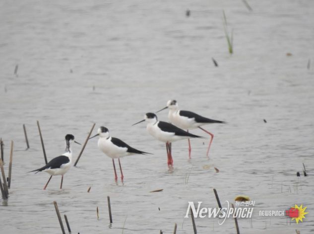 뉴스펀치 김용희 기자 | 순천만 연꽃 복원습지에 여름철새 장다리물떼새 4마리가 다시 찾아왔다.