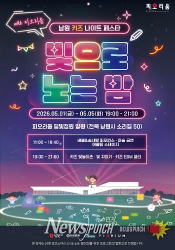 뉴스펀치 정홍균 기자 | 남원시 미디어아트 전시관 피오리움 일원에서 어린이날 주간을 맞이하여 5월 1일부터 5월 5일까지 ‘키즈 나이트 페스타 '빛으로 노는 밤'’이 열린다.