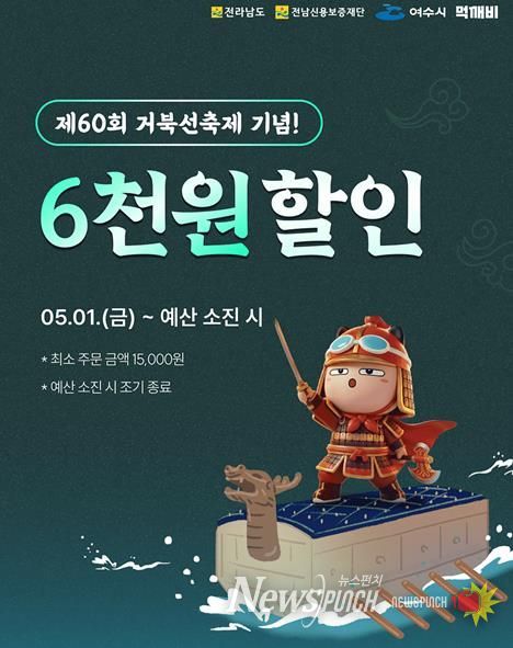 뉴스펀치 김용희 기자 | 여수시는 제60회 여수거북선축제를 맞아 지역 소상공인 지원과 지역경제 활성화를 위해 공공배달앱 ‘먹깨비’ 할인 이벤트를 추진한다고 밝혔다.