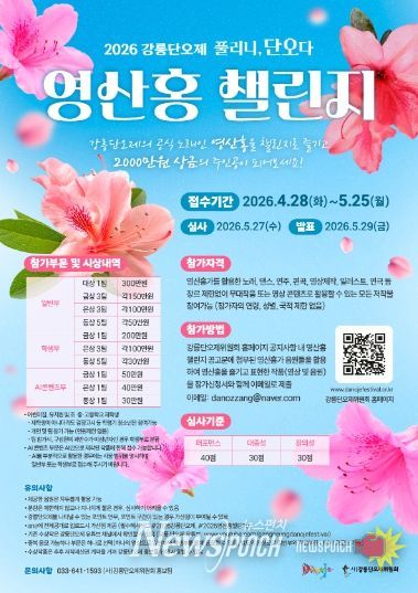 이번 챌린지는 노래, 댄스, 연주, 편곡, 영상 제작, 일러스트, 연극 등 장르 제한 없이 영산홍가를 활용한 콘텐츠라면 자유롭게 참여할 수 있다. 특히 강릉단오제를 상징하는 포인트 안무나 구간이 포함될 경우 가산점이 부여된다.