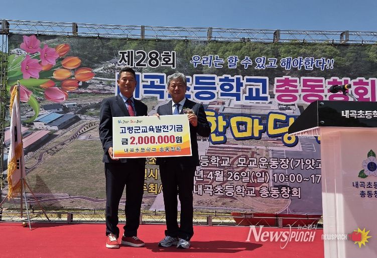 사단법인 고령군교육발전위원회(이사장 성현덕)는 지역교육 활성화를 위하여 선뜻 큰 금액을 기탁한 내곡초등학교 총동창회에 고마움을 표하고“어려운 경제여건 속에서도 교육발전을 위해 기탁해주셔서 깊이 감사드린다”며 “기탁해 주신 뜻을 소중히 받아, 우리 학생들이 보다 나은 교육환경에서 성장할 수 있도록 최선을 다하겠다”고 전했다.