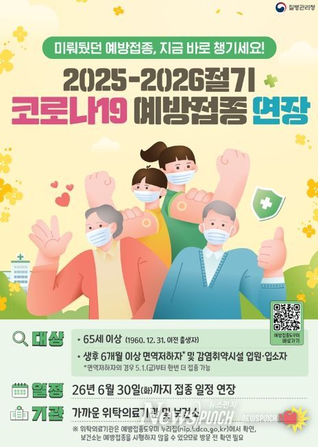 장연국 소장은 “이번 기간 연장은 면역 취약계층의 안전을 확보하고, 최근 몇 년간 여름철마다 유행해 온 코로나19에 선제적으로 대비하기 위한 조치”라며 “예방접종 참여에 시민 여러분의 적극적인 협조를 당부드린다”고 말했다.