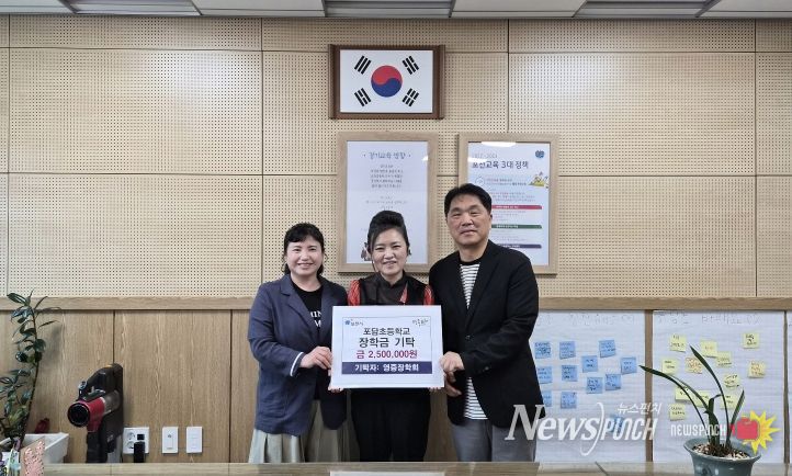 뉴스펀치 박상훈 기자 | 포천시 영중면 영중장학회는 지난 27일 지역 인재 양성을 위해 포담초등학교와 영중중학교를 방문해 장학금을 전달했다.