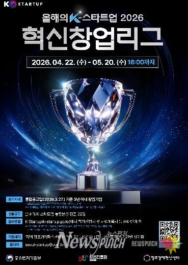 뉴스펀치 강영선 기자 | (재)충남창조경제혁신센터는 오는 5월 20일 16시까지 우수한 기술력과 사업모델을 보유한 창업기업을 대상으로 ‘올해의 K-스타트업 2026’ 혁신창업리그(예선) 참가자를 모집한다고 밝혔다.