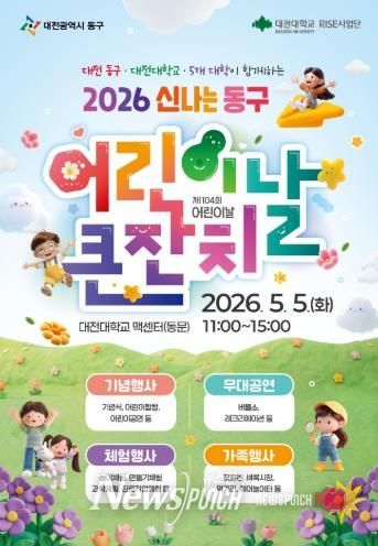 뉴스펀치 이현승 기자 | 대전 동구는 제104회 어린이날을 맞아 오는 5월 5일 오전 11시부터 대전대학교 맥센터 실내체육관에서 ‘동구 미래의 주인공들과 함께하는 어린이날 큰잔치’를 개최한다고 28일 밝혔다.