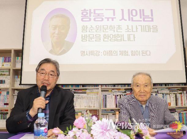 뉴스펀치 박상훈 기자 | 황순원 작가의 장남인 황동규(1938~) 시인이 지난 23일 서종면에 위치한 황순원문학촌 소나기마을(촌장 김종회)에서 열린 ‘2026 소나기마을 문학교실’에서 ‘아픔의 체험, 힘이 된다’를 주제로 특별 강연을 진행했다.