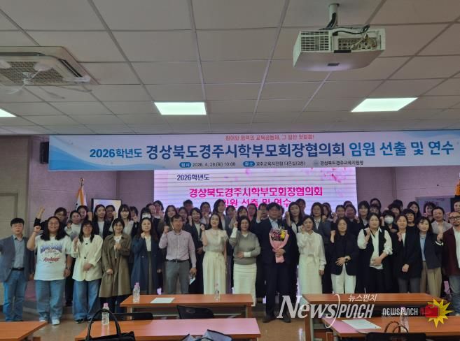 뉴스펀치 박세훈 기자 | 경상북도경주교육지원청은 2026년 4월 28일 경주교육지원청 3층 다온실에서 관내 초 · 중 · 고 · 특수학교 학부모회장들이 참석한 가운데 경상북도경주시학부모회장협의회 임원을 선출하고 학부모 역량 강화를 위한 연수를 실시했다.