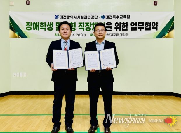 뉴스펀치 이현승 기자 | 대전특수교육원은 4월 28일 대전광역시시설관리공단 무지개복지공장에서 ‘장애학생 맞춤형 직업 체험을 위한 업무협약’을 체결했다고 밝혔다.