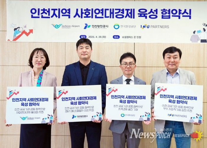 뉴스펀치 조평훈 기자 | 인천국제공항공사는 사회적 기업 등 인천지역 사회연대경제를 활성화하기 위해 인천소재 공공기관 및 인천대학교 창업지원단과 ‘인천지역 사회연대경제 육성을 위한 상호협력 업무협약’을 체결했다고 밝혔다.