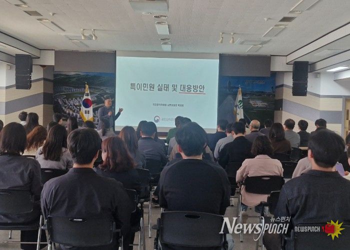 이번 교육은 특이민원 유형별 대응 전략, 사례 기반의 실무 대응 요령 등을 중심으로 국민권익위원회 소속 특이민원 시민상담관 박재병 강사가 참여해 실제 상담 사례를 중심으로 한 실전형 교육이 진행 됐다.